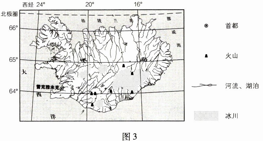 4.冰岛首都雷克雅未克的纬度位置大致为( )