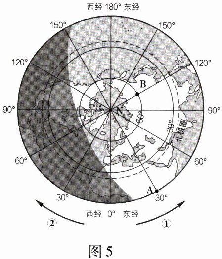 (1)图中A、B两地,此时接近正午的是______地,处于深夜的是______地。