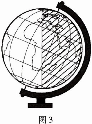 (1)观察地球仪,当用手自西向东拨动地球仪时,从北极上空看,地球仪自转的方向是______时针;从南极上空看,地球仪自转的方向是______时针。(填“逆”或“顺”)请用箭头在图3中标出旋转方向。