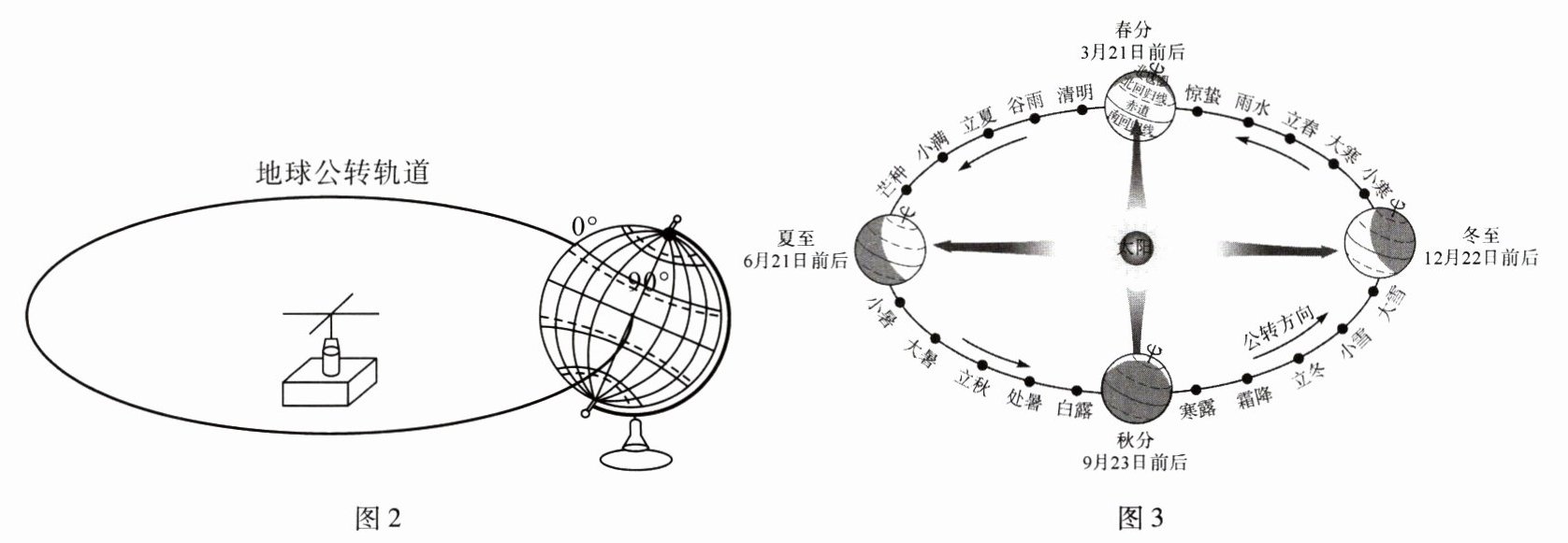 地球仪是学习地理的重要工具。某同学运用地球仪演示地球公转(见图2,十字架代表太阳光线),读图2,完成1、2题。