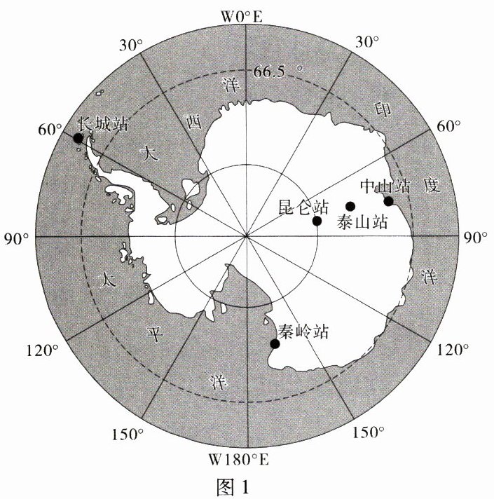 例:图1是我国南极科考站分布图,没有极昼极夜现象的科考站是( )