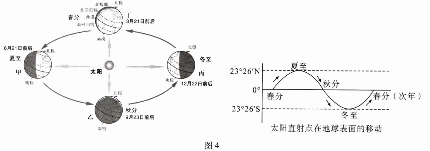 (4)当地球运行至甲位置时,太阳直射的纬线是______。