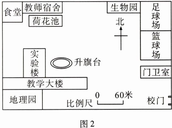 2.已知升旗台到校门的图上距离约为4厘米,则两者间的实地距离大约为( )
