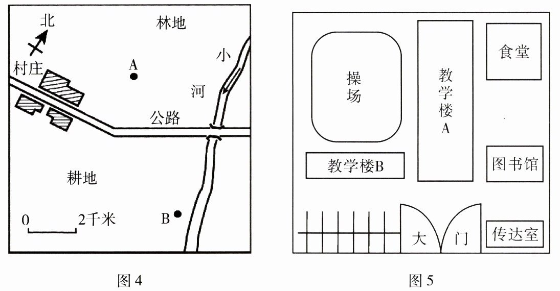 (3)图中传达室位于图书馆的______方向,操场位于传达室的______方向。