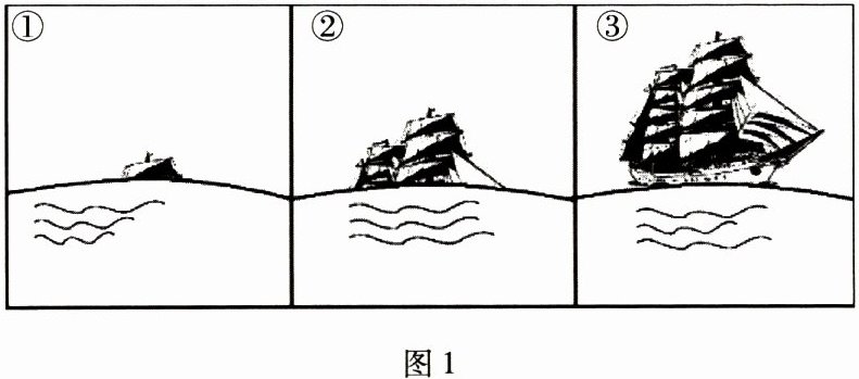 例:在海边观察远处驶来的轮船,会出现如图1中①至③所示的现象。这种现象