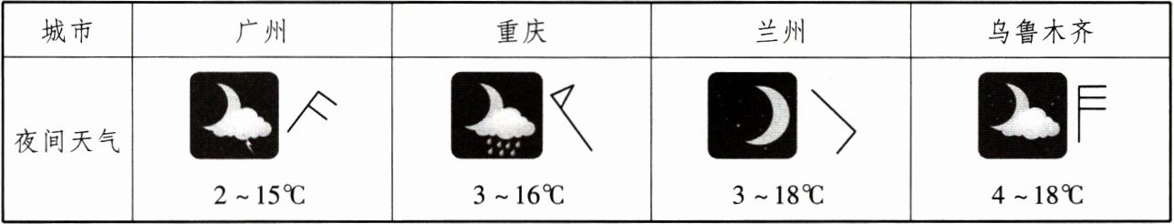 A.广州 B.重庆 C.兰州 D.乌鲁木齐