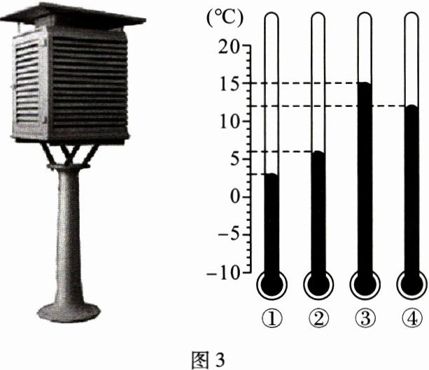 气温的测定和记录活动。下图示意百叶箱和测量结果。据此完成1~3题。