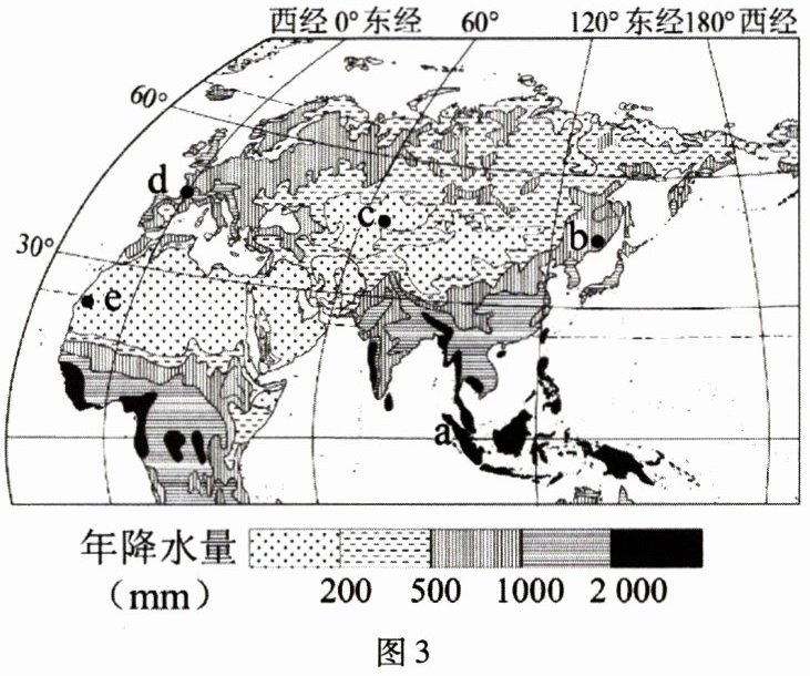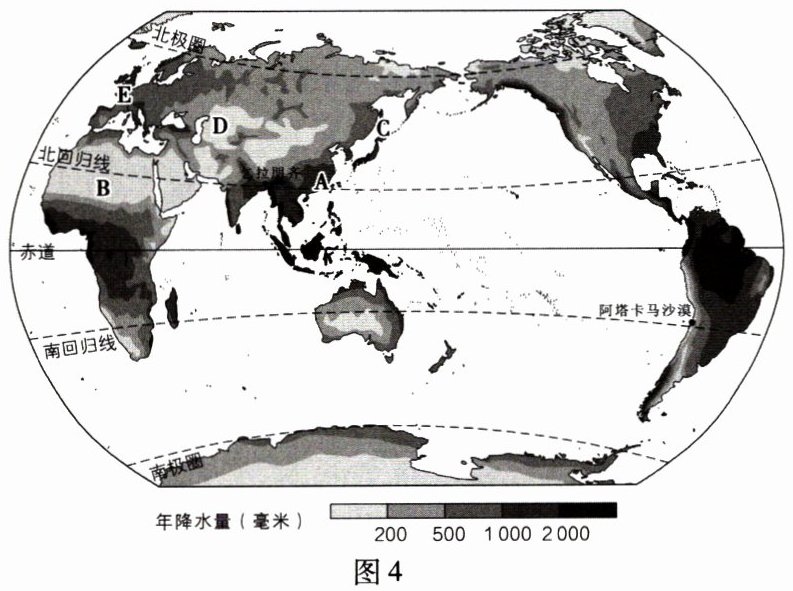(3) 比较E、D两地降水量可知,中纬度地区年降水量的空间分布规律是______。