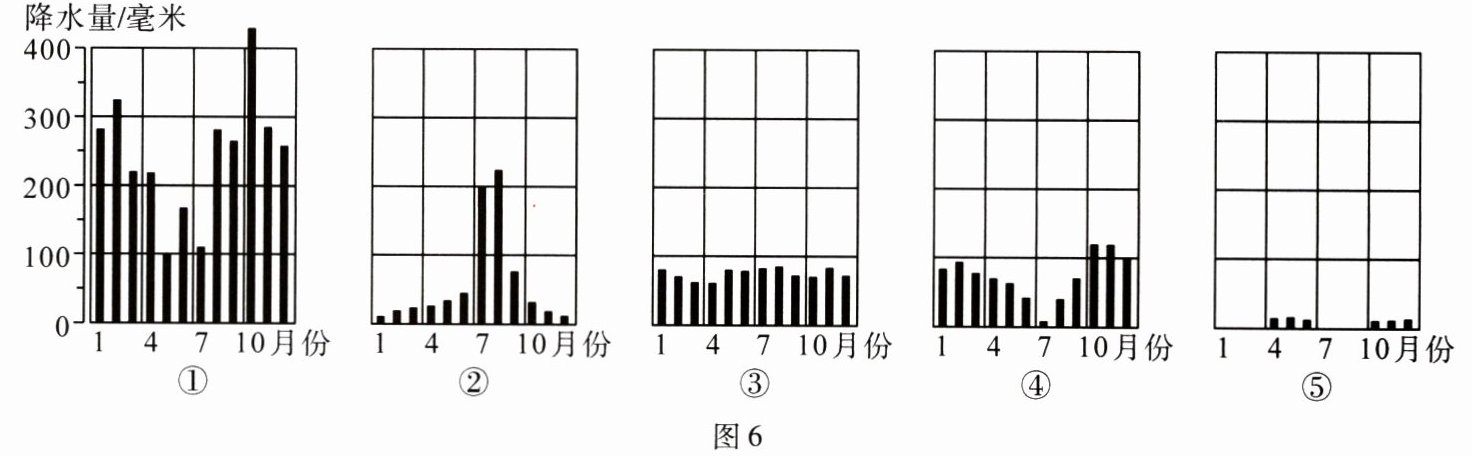 (3) 下列降水量柱状图代表哈姆家乡降水情况的是______。