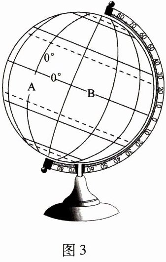 5. 读图3,下列有关地球仪上的经纬线的叙述正确的是( )