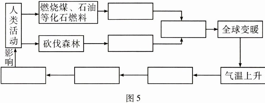 气候。请根据你的理解将下列正确的字母代号填入图5中相应的空白框内。