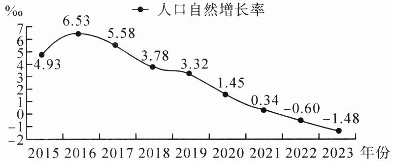 2.2015-2016年,我国人口自然增长率出现明显变化的主要影响因素是( )