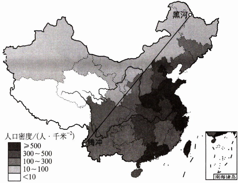 (1)图中黑河一腾冲一线是我国人口地理分界线,黑河位于______省,该省