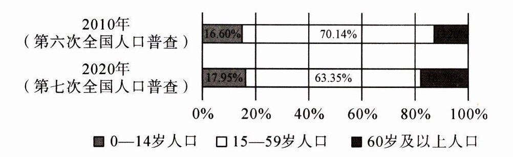 施。下图示意2010年和2020年我国两次人口普查的人口年龄结构。