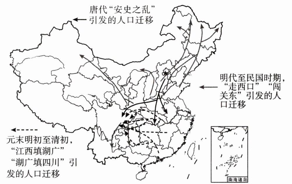 最终形成了现在的人口分布格局。读中国历史上的几次人口迁移示意图,回答下列