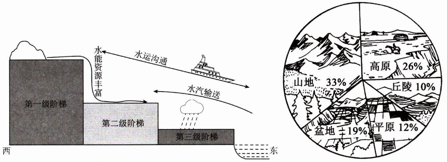 (3)我国第二级阶梯上的主要地形类型是______、______。