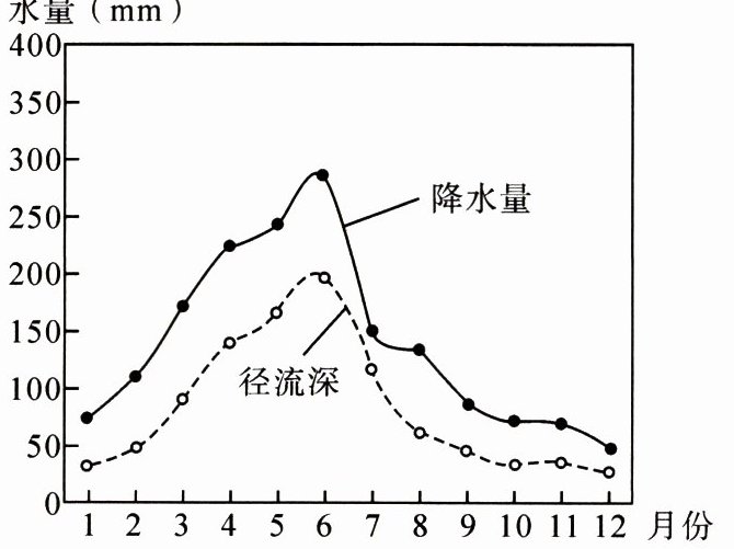 鄱阳湖水位可以反映鄱阳湖流域的水位变化。鄱阳湖有“洪水一片,枯水一线”的景观特点。2022 年 9 月,鄱阳湖星子站水位降至历史最低。下图为鄱阳湖流域多年平均水量变化。据此完成 4 ~ 5 题。