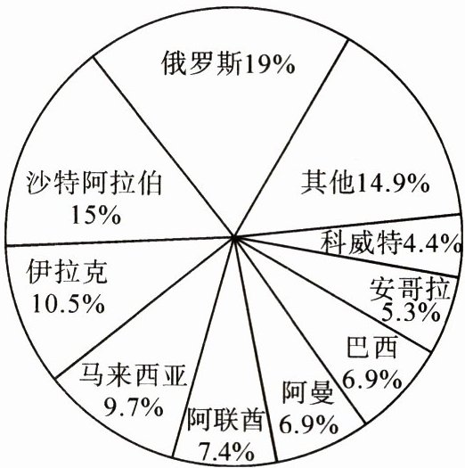 1993年之后我国原油进口量日益增加。2001—2023年,我国原油进口量从0.6亿吨上涨至5.64亿吨,对外依存度从2001年的24.7%上涨到2023年的约73%。下图为2023年我国原油进口来源国进口量占比统计图。据此完成3~5题。