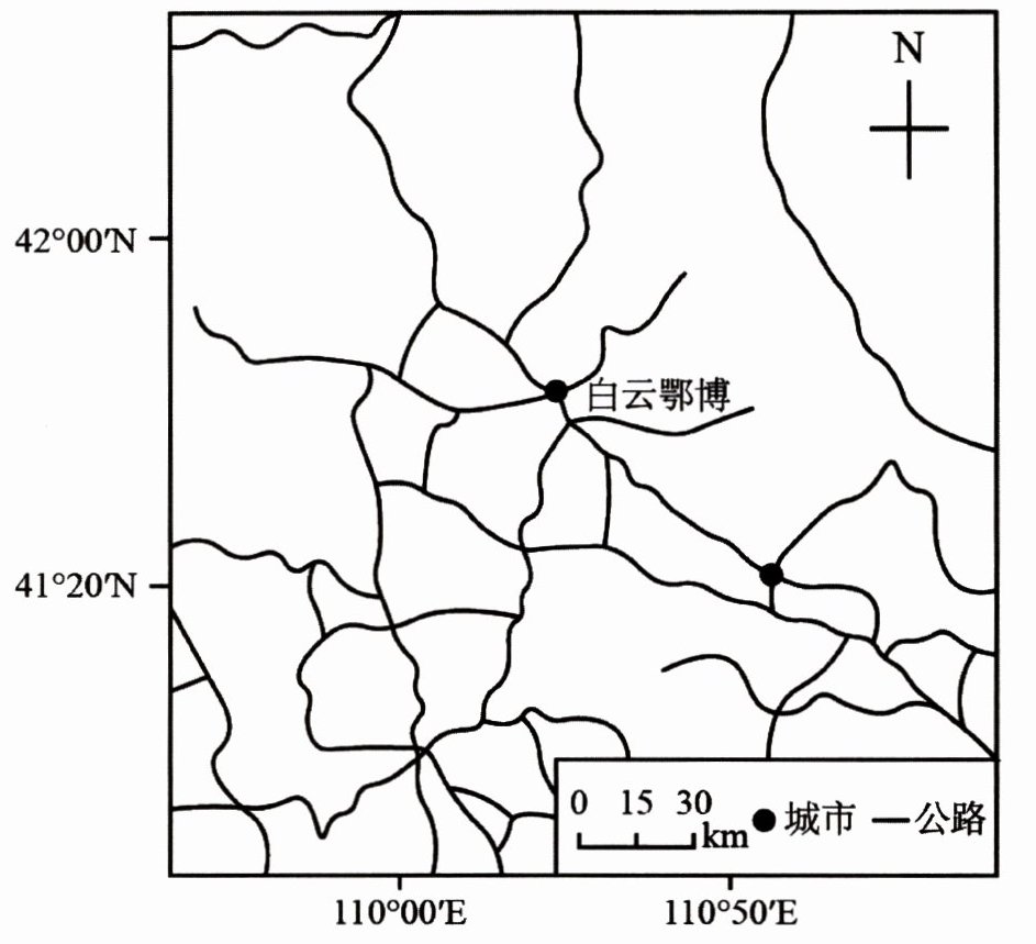 材料三 兴趣小组发现,稀土已广泛用于冶金、石油化工、玻璃陶瓷、航空航天、国防军事等领域。内蒙古白云鄂博是我国轻稀土主要产地,当地稀土储量约占全国稀土储量的83%,居世界第一,被誉为“世界稀土之乡”。白云鄂博地理位置如图所示。