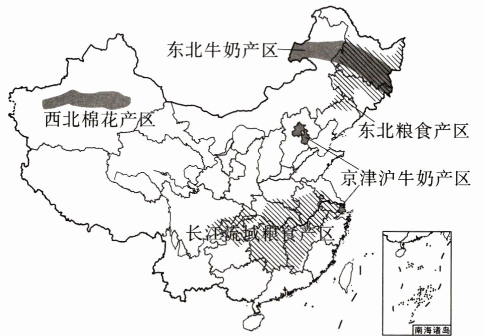 下图为我国部分农产品优势产区布局示意图。读图完成1~3题。