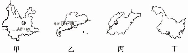 1. 图中最早见到日出的省级行政区是( )