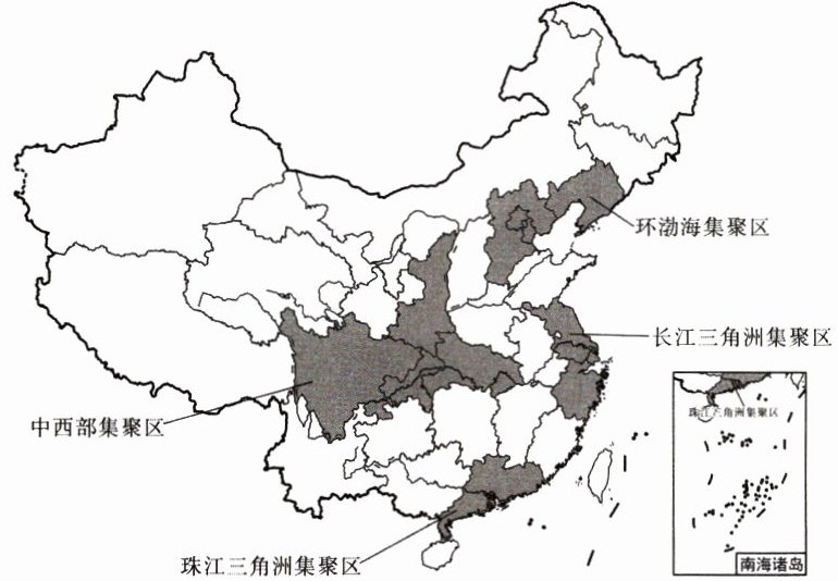 例:(2024·山西) 智能制造将新一代的信息技术贯穿制造全过程,实现了制造系统全智能化,提高了制造业的质量、效率与核心竞争力。下图示意我国智能制造产业集聚区分布。据此完成下面小题。