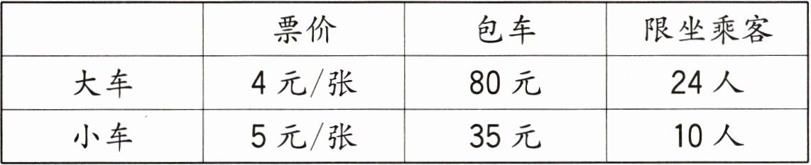 6. 四(2)班$56$人去参观植物园,请你设计最合算的乘车方式。