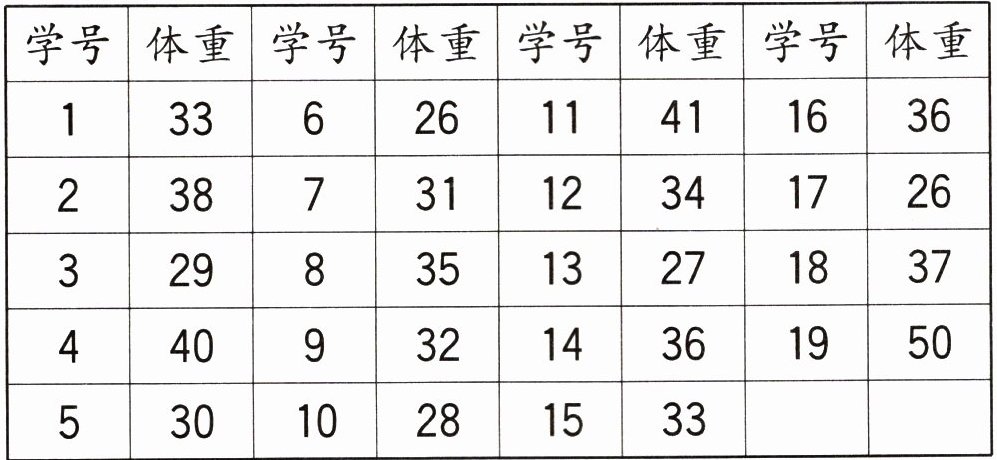 2. 下面是四(2)班女生体重情况记录。(单位:千克)