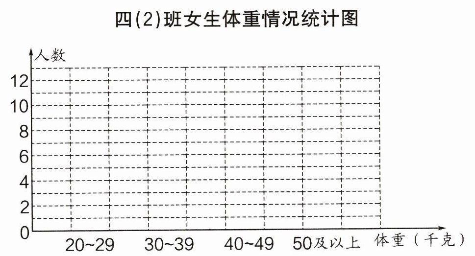 (2) 根据四(2)班女生体重情况统计表的数据,完成下面统计图。