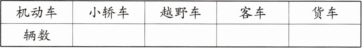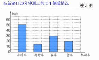 假设统计结果为:小轿车50辆,越野车10辆,客车30辆,货车20辆(实际统计数需根据真实观察填写,此处为示例)。