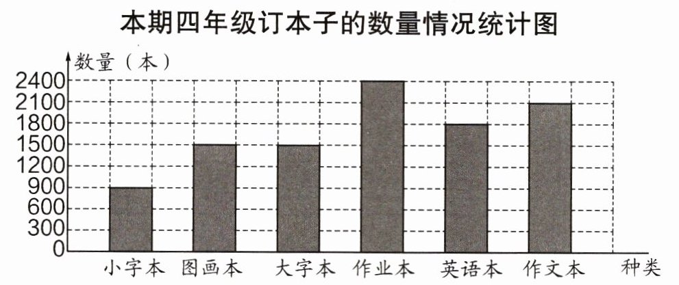 4. 根据本期四年级订本子的数量情况统计图填空。