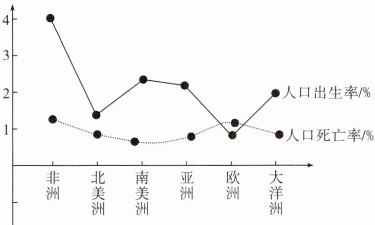 下图示意部分大洲人口出生率和死亡率,读图,完成4~6题。