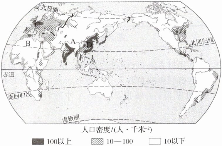 2. 关于C、D地区人口稠密原因的叙述,不正确的是( )