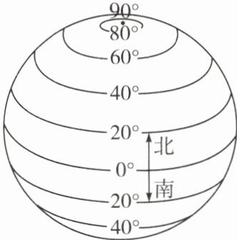 (2) 从赤道向北和向南,各分90°,起始线以北称为______,用“____”表示,起始线以南称为______,用“____”表示。北极和南极分别为______和______。