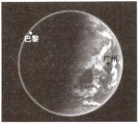 2025年1月3日上午,居住在广州的小明打开电脑中的地图软件,查看从太空看向地球的实时画面。结合所学知识,完成3~4题。