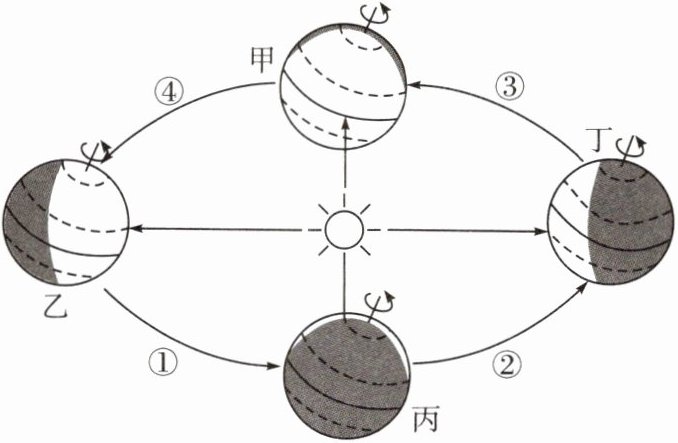 (2)地球公转到乙位置时,太阳垂直照射在____,这一天是北半球的____(节气),北极圈及其以北出现____现象,南半球的悉尼此时为____季。