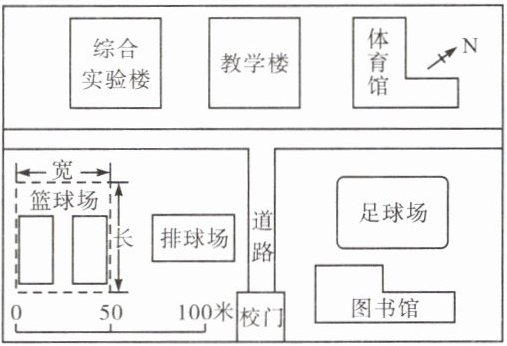 4. 学校篮球场区域的总宽度约为( )