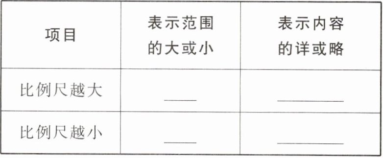 2. 图幅大小相同情况下,比例尺大小和表示范围、内容详略之间的关系