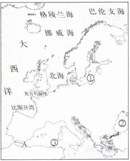 4. 海的分类:海是洋的______部分,一般靠近大陆,常常由______或______与大洋隔开。有的海深入大陆的内部,如①______、②______;有的海介于大陆之间,如③______。它们与相邻海洋之间,大多以______相连,如连接③海和大西洋的海峡是A______海峡。