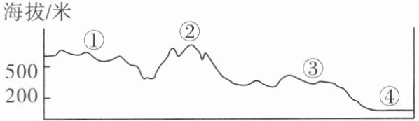 地形是指地球表面高低起伏的形态,读某地地形剖面示意图,完成1~2题。