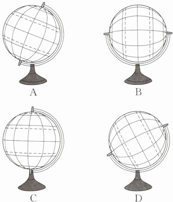 3. 下列四个地球仪中,组装正确的是( )