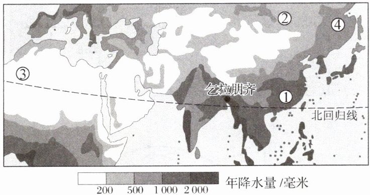 D.乞拉朋齐被称为世界“雨极”是因为其地处山脉背风坡