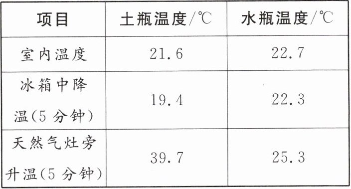 |项目|土瓶温度/℃|水瓶温度/℃|