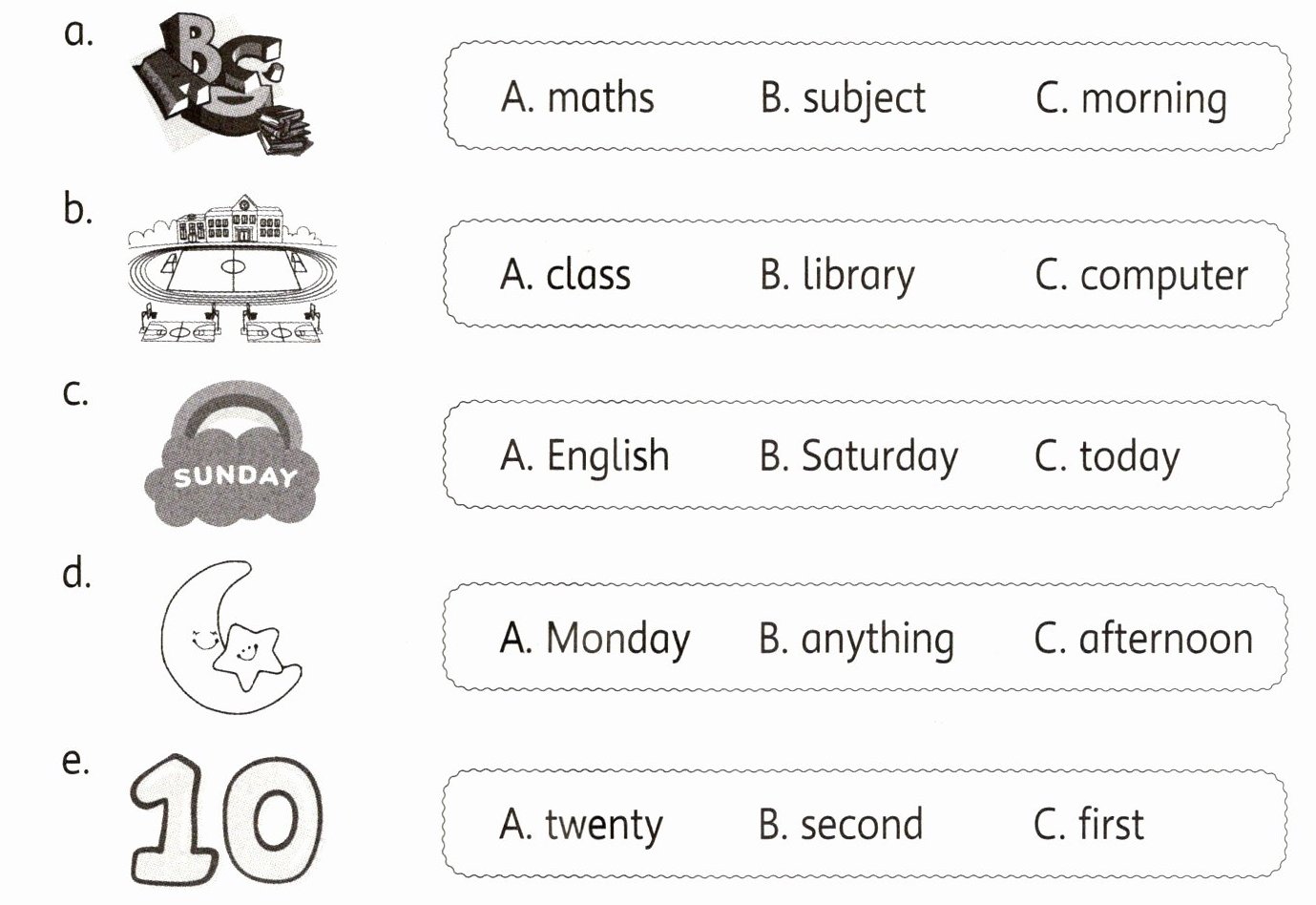 3 Look and circle. 看图,圈出与图片表示单词同类的词。