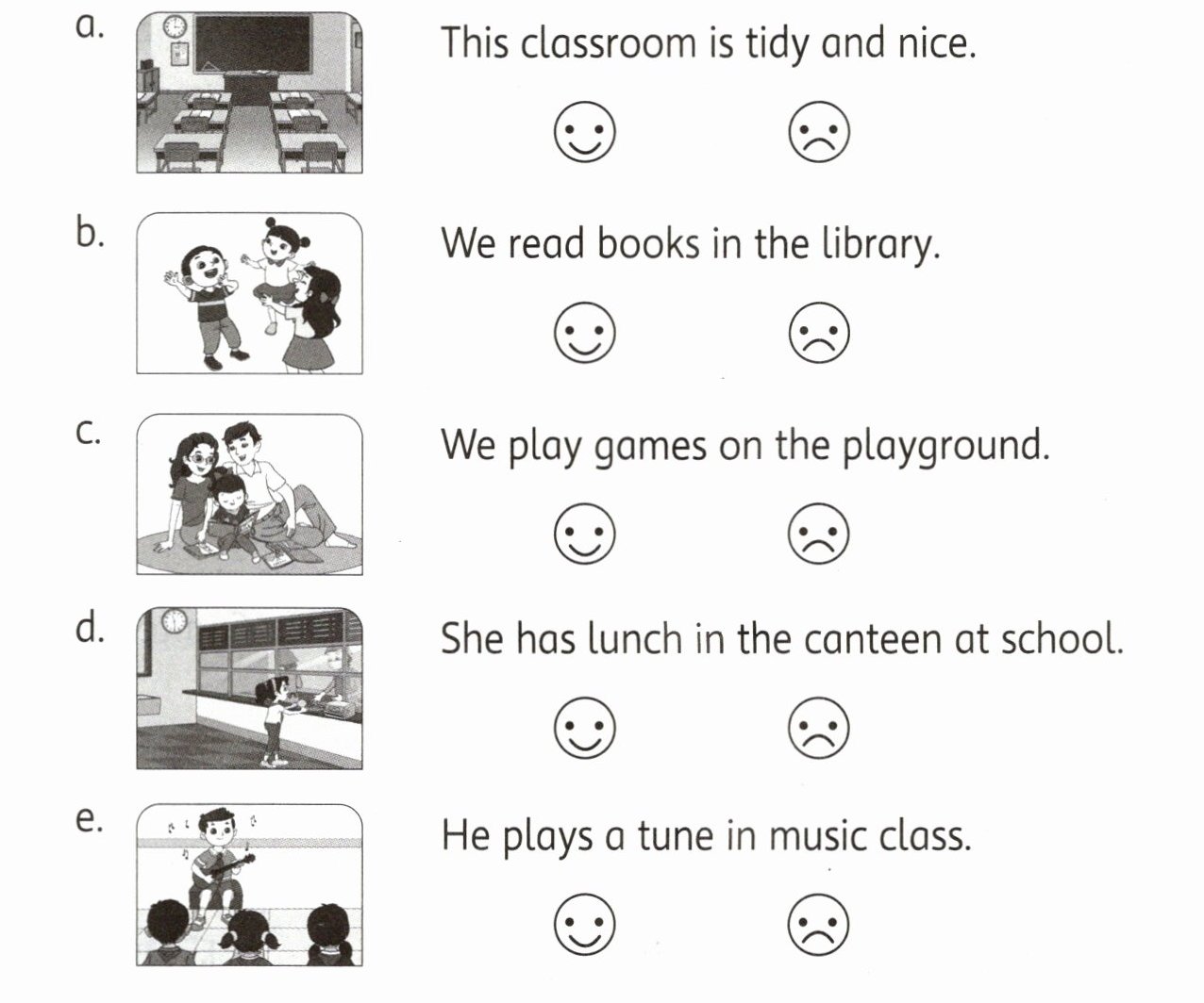 5 Look, read and circle. 看图,图文相符的圈☺,不符的圈☹。