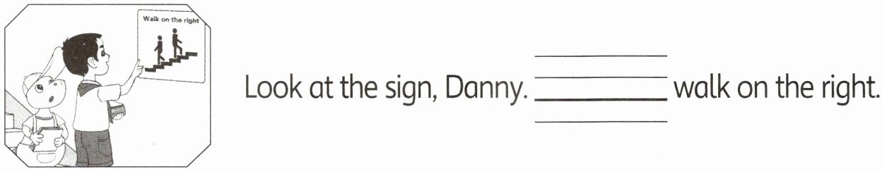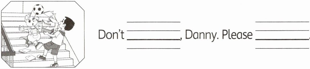 2 Look, read and write. 看图,你想对丹尼说什么?写单词完成句子。