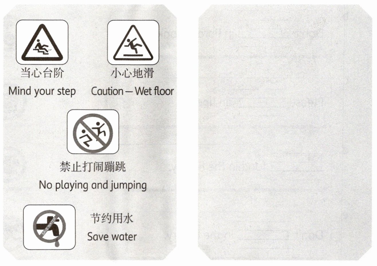 5 Read, draw and write. 读一读下面的标识,你都认识吗?你还知道哪些?画一画并写一写吧。