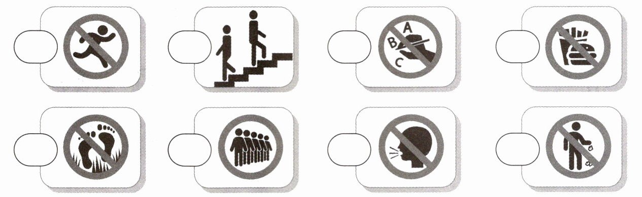 4. Look, read and match. 看标识,将对应句子的标号写在标识旁。