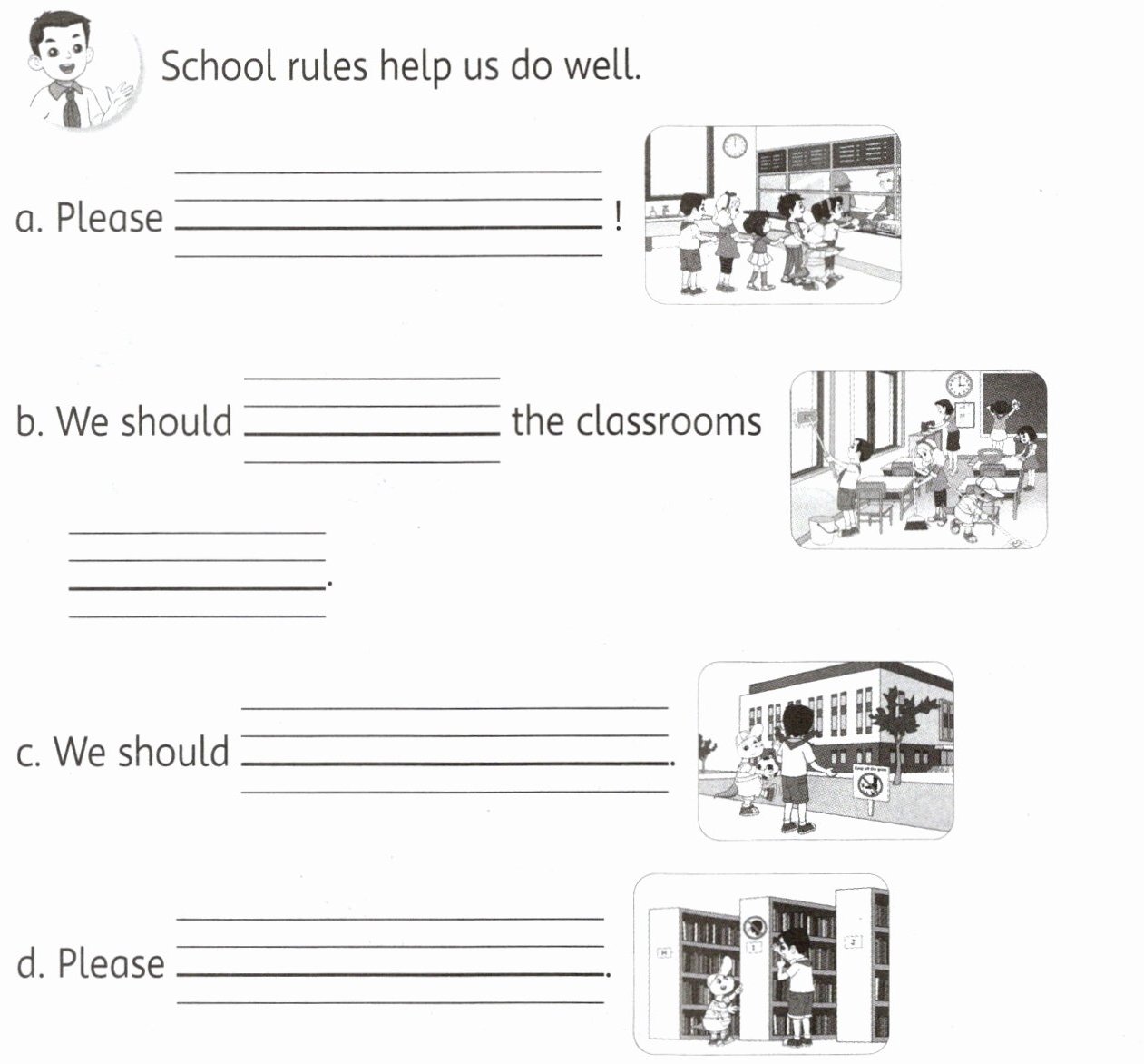 Write about your school rules and say. 写一写你们学校的校规,然后和同学说一说。