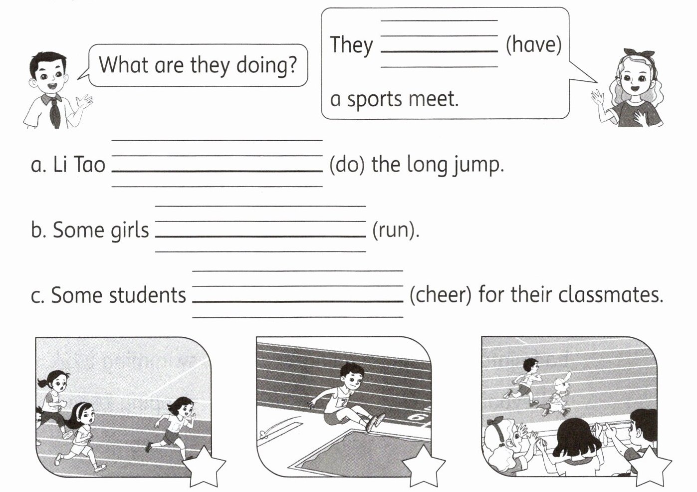 2 Write and match. 用动词的正确形式填空,再给图片匹配合适的句子。